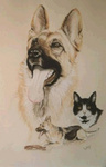 2008Portret van Cindy samen getekend met zijn vriendje de kaer Speedy.